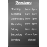 Store and window owners can find a window schedule extremely practical for displaying their opening hours clearly and visibly. This gives future customers the opportunity to find out when they can visit the store or window to make purchases or receive information.